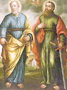 tzn. sv.Petra s klíči a sv.Pavla s mečem.